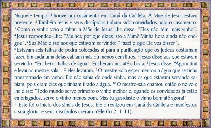 Estes são os pressupostos para melhor se entender o primeiro e portentoso milagre do Senhor, nas Bodas de Caná.