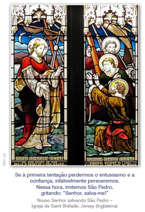 Essa é a nossa história: ao longo de nossa caminhada rumo ao Reino Eterno, sempre acontece, mais cedo ou mais tarde, diminuir-nos o fervor ou, às vezes, até sua sensibilidade chegar à estaca zero. E, assim, somos provados em nossa fé. Ai de nós se, nessas circunstâncias, nos esquecermos de que tudo quanto temos de bom vem de Deus! Se à primeira tentação perdermos o entusiasmo e a confiança, acabaremos por sentir a lei da gravidade cobrando o peso de nossa própria miséria: infalivelmente pereA única solução para nós, nessa hora, será imitarmos São Pedro, gritando: “Senhor, salva-me!”