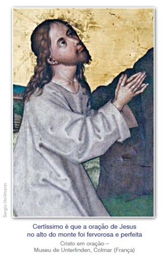 No que terá consistido a oração de Jesus, no alto do monte, é para nós um mistério. Sua Alma se encontrava na visão beatífica e, portanto, tinha uma noção clara de quais eram os desígnios de Deus. Seu conhecimento divino é eterno, por ser Ele a Segunda Pessoa da Santíssima Trindade. Ademais, seu conhecimento experimental humano se desenvolvia a cada momento.