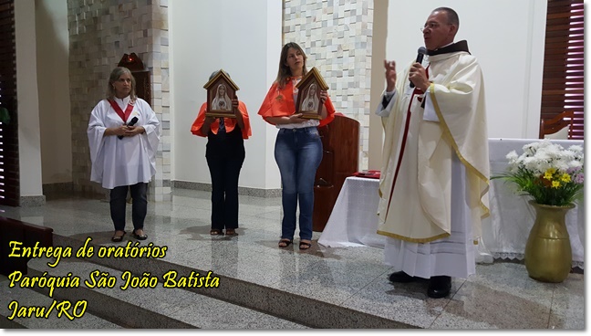 Em Ouro Preto do Oeste foi doada pelos Arautos uma bela imagem de Nossa Senhora de Fátima para a futura capela da Comunidade Nossa Senhora de Fátima, em fase adiantada de construção. A entrega da Imagem se deu na Igreja Matriz, Santuário Nossa Senhora Aparecida, durante Celebração Eucarística presidida pelo Pe. Aumir Scomparin e concelebrada pelo Pároco, Pe. José Natal Chagas Ferreira, o qual abençoou a nova Imagem.