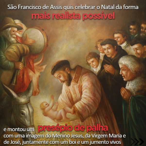 Foi um santo, foi São Francisco de Assis. Este santo querendo celebrar o Natal da forma mais realista possível e, com a permissão do Papa, montou um presépio de palha, com uma imagem do Menino Jesus, da Virgem Maria e de São José, juntamente com um boi e um jumento vivos!