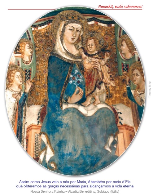 Resta-nos lembrar o indispensável papel de Maria na nossa salvação. Pois assim como Jesus veio a nós por Maria, é também por meio d’Ela que obteremos as graças necessárias para sermos outros Cristos e alcançarmos a vida eterna. ♦