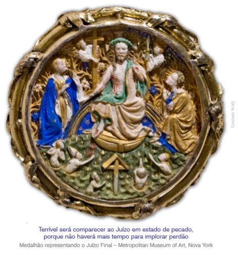 Não estaremos a sós nem sequer no juízo particular, pois Deus, a Verdade em sua essência, estará presente. Nessa ocasião reveremos todas as nossas impressões, apreços, ânsias ou raciocínios pelo prisma da Verdade, que Se apresentará majestosa diante de nós. Nessa hora, de que nos adiantarão as honras, as riquezas, os prazeres, os romantismos e coisas do gênero? Terrível será comparecer a esse juízo em estado de pecado, sem o devido arrependimento e sem ter recebido o Sacramento da Reconciliação! Terrível, porque não haverá mais tempo para implorar perdão…