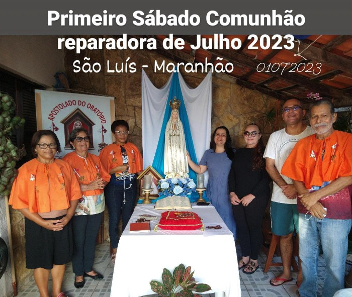 Os participantes do Apostolado do Oratório reuniram-se uma vez mais neste mês de julho, aos pés da Santíssima Virgem para realizar a Comunhão Reparadora do Primeiro Sábado.