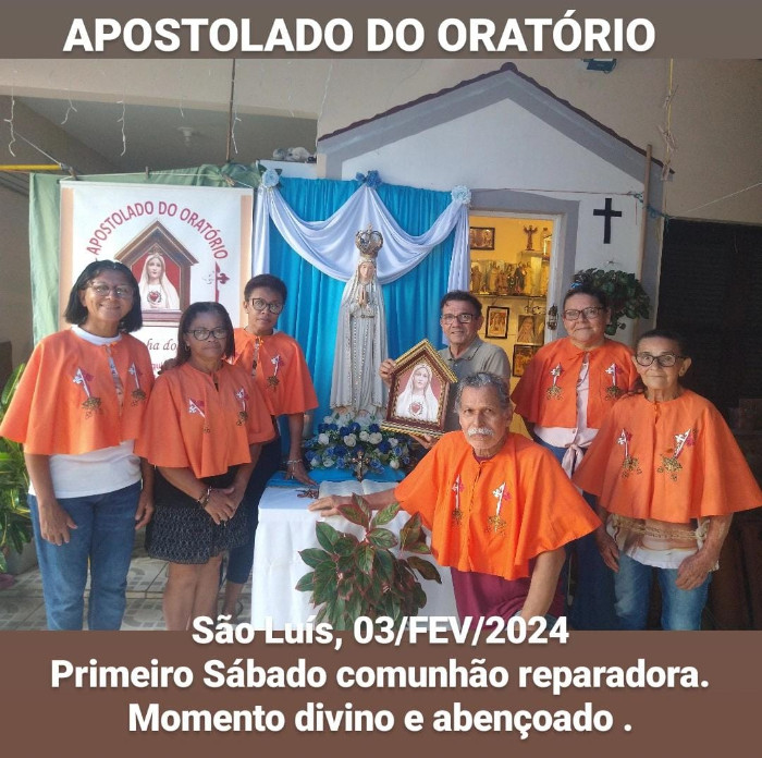Neste último fim de semana os Corações de Jesus e Maria receberam, certamente com muito agrado, as orações e reparações dos membros do Apostolado do Oratório ao realizarem a Comunhão Reparadora dos Primeiros Sábados, como a Santíssima Virgem assim o pediu em Fátima.