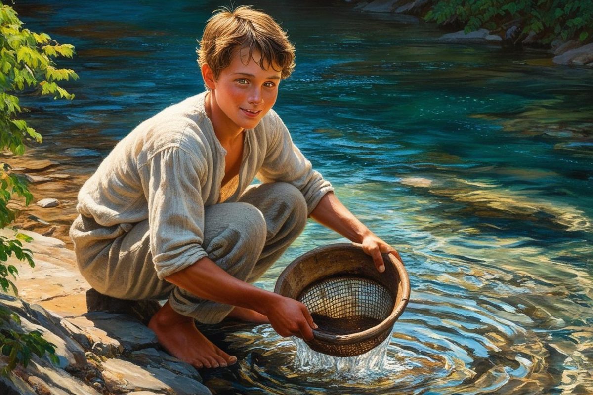 O jovem, obediente, lá foi. Passados alguns instantes, voltava correndo com a peneira molhada, porém vazia.
