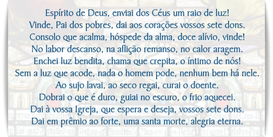 Vinde, Pai dos pobres, dai aos corações vossos sete dons.