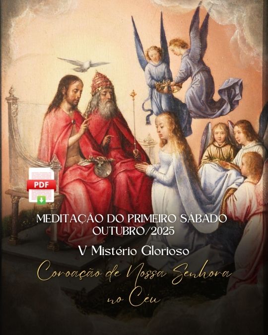 No cumprimento da nossa devoção do Primeiro Sábado, e tendo em vista a Festa de Nossa Senhora do Rosário, meditemos em outubro o 5º Mistério Glorioso do Rosário – A Coração de Maria no Céu. Levada à glória da eterna bem-aventurança em corpo e alma, a Mãe de Deus foi solenemente coroada pela Santíssima Trindade como a Soberana de todo o Universo. Desde os primeiros tempos da Igreja, Nossa Senhora foi invocada pelos fiéis com o título de Rainha, sendo por Ela prontamente atendidos e amparados, com requintes de bondade e misericórdia.