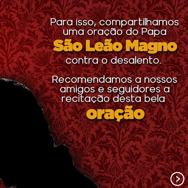 Com efeito, a tentação de desanimar existe e necessita ser combatida com todas as armas espirituais, como a penitência e a oração. No que diz respeito a esta última forma de combate, transcrevemos abaixo uma eficaz oração do grande Papa São Leão Magno – cuja memória a Igreja celebra em 10 de novembro – contra o desalento. Recomendamos a nossos leitores, amigos e membros do Apostolado do Oratório a recitação desta bela oração.
