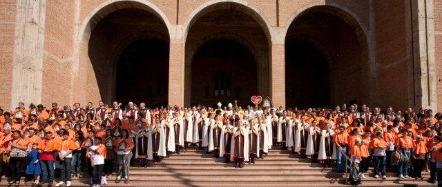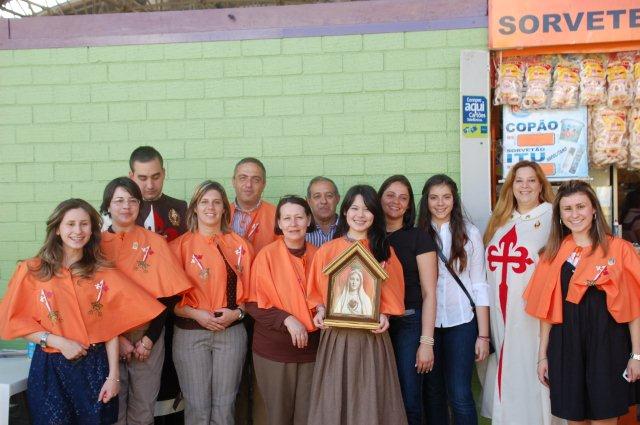 Continuamos neste post o relato do encontro “Dia com Maria”, ocorrido nos dias 8 e 9 do corrente mês. À noite, após a Santa Missa, seguiu-se uma procissão luminosa com a Imagem peregrina de Nossa Senhora de Fátima. Portando tochas, um grande número de fiéis participou entusiasmado do cortejo. Até os bares da cidade fecharam em respeito à procissão. Rezou-se um terço, intercalado com músicas do coro e da fanfarra do Apostolado do Oratório.