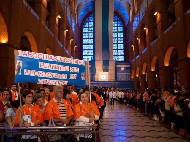 No passado 13 de agosto, os grupos do Apostolado do Oratório provenientes de mais de 100 cidades do País se reuniram aos pés da Padroeira para rezar pela família brasileira. Os quase 8 mil devotos presentes manifestavam a sua alegria em participar de um movimento que tem como finalidade manter viva a Igreja doméstica no seio das famílias brasileiras.